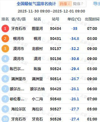 在寒潮影响下,今天早晨,内蒙古图里河站最低气温达到-35℃,个别区域站还达到了-40℃,光看这数字都仿佛感受到阵阵寒气了。